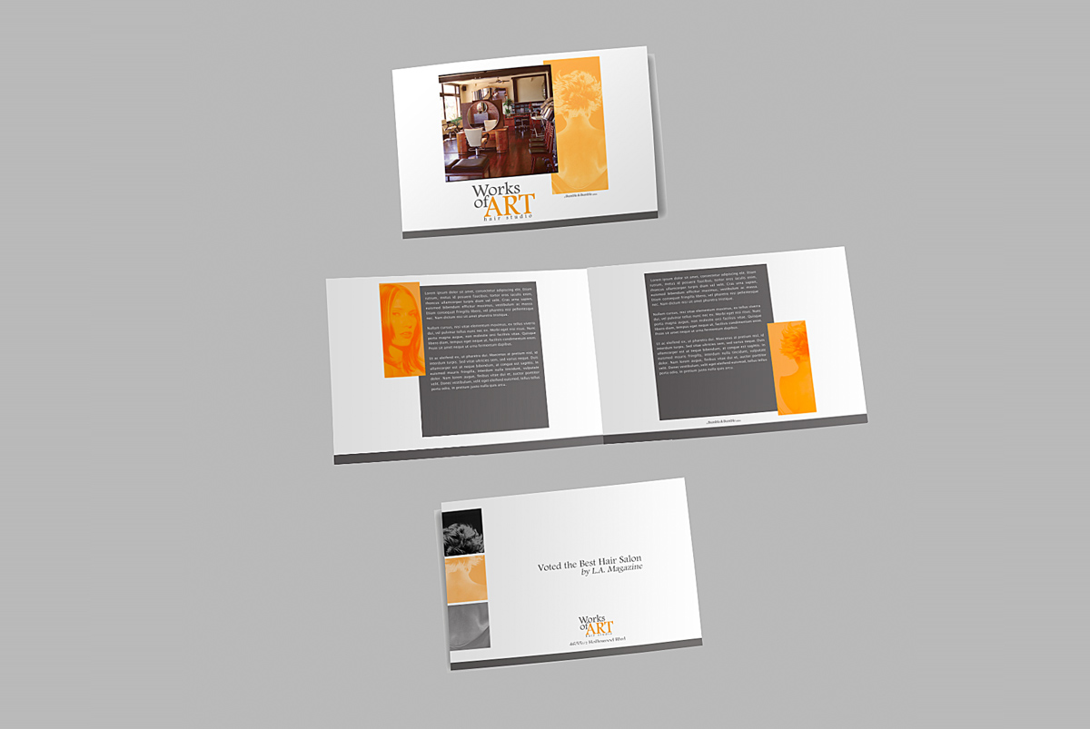 Works of Art Hair Studio. I created the original logo, and extended it's branding position.